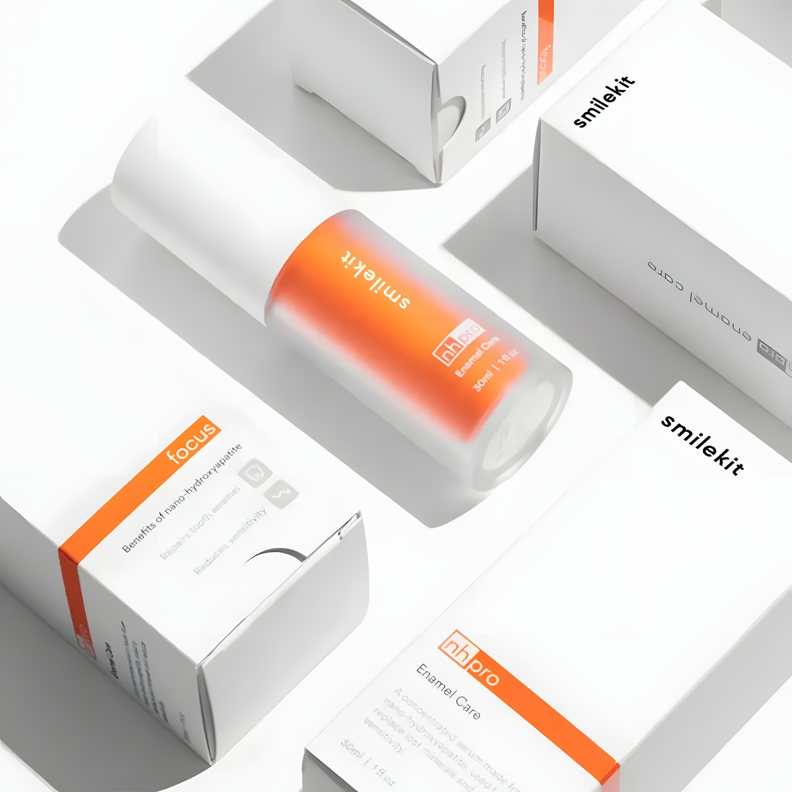 SmileKit NHpro Enamel Care is a highly concentrated product specifically designed to strengthen tooth enamel and relieve sensitivity. The formulation contains nano-hydroxyapatite (nHAp), a clinically proven ingredient that restores lost minerals and improves the tooth's protective layer.